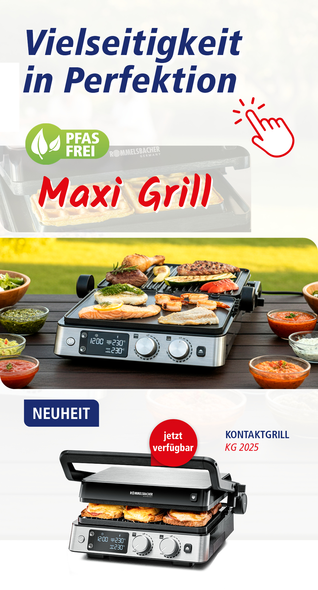 Willkommen bei ROMMELSBACHER, wo durchdachte Küchengeräte nicht nur funktionieren, sondern FREUDE machen! Unsere Produkte sind keine Trends, sondern treue Begleiter für Menschen, die Wert auf Langlebigkeit, Nachhaltigkeit und schönes Design legen.