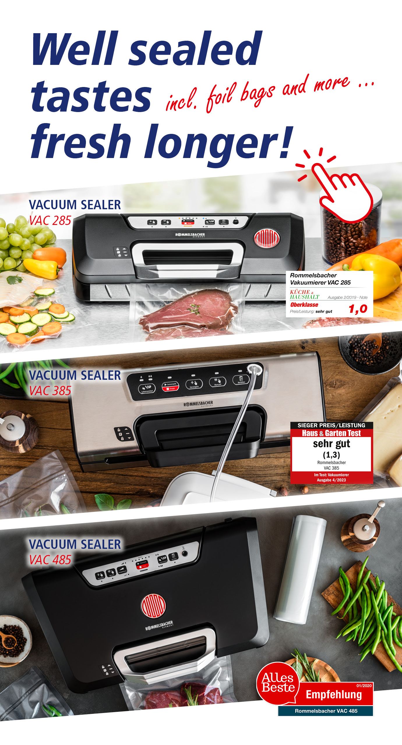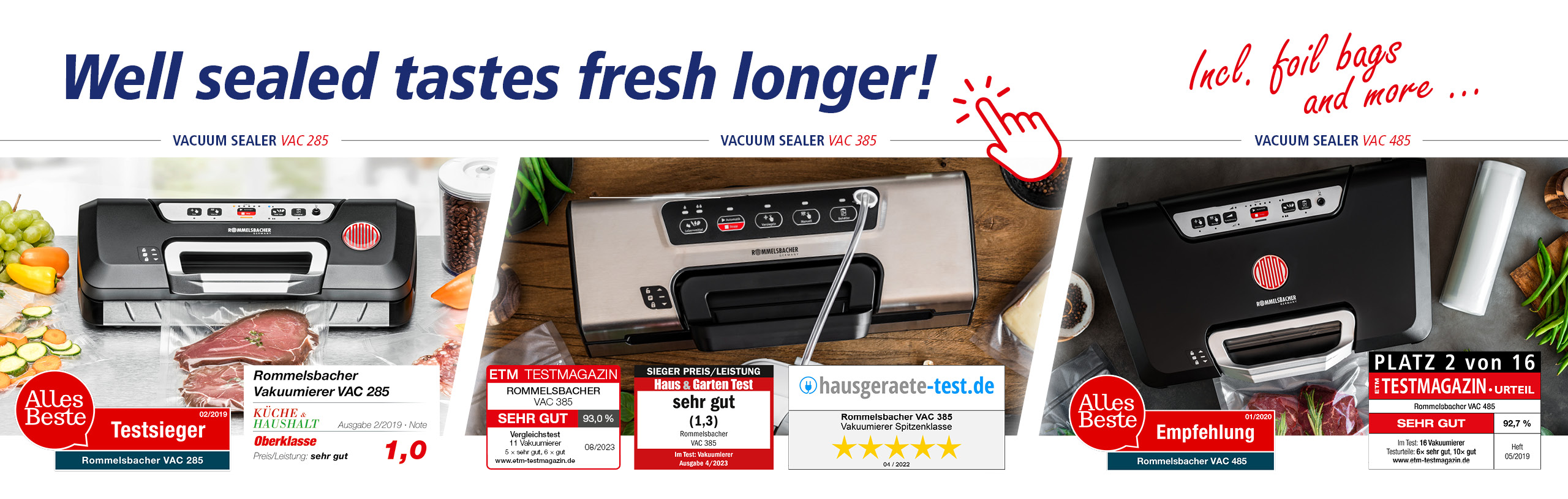 ROMMELSBACHER is a quality brand for 2026! Millions of posts from the internet and social media were evaluated in a comprehensive study, focusing on brands that stand for genuine quality. ROMMELSBACHER is one of them – a result that makes us proud! We particularly impressed in the areas of performance, reliability, manufacturing quality, customer focus and technical expertise. This award encourages and motivates us to continue to deliver quality and customer focus in the future.