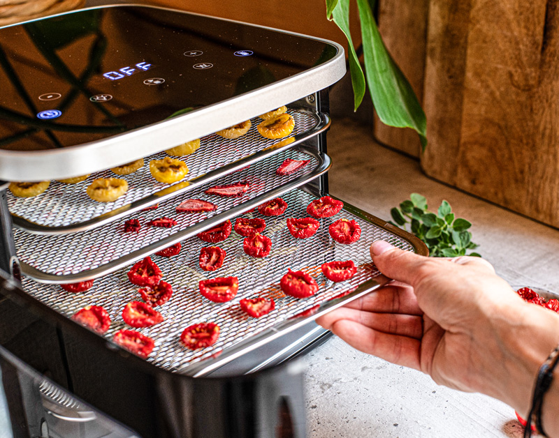 Dehydrating not only produces food that keeps well, but also gives you the satisfying feeling of having everything under control – from shopping to the finished product, free from preservatives and unnecessary sugar.