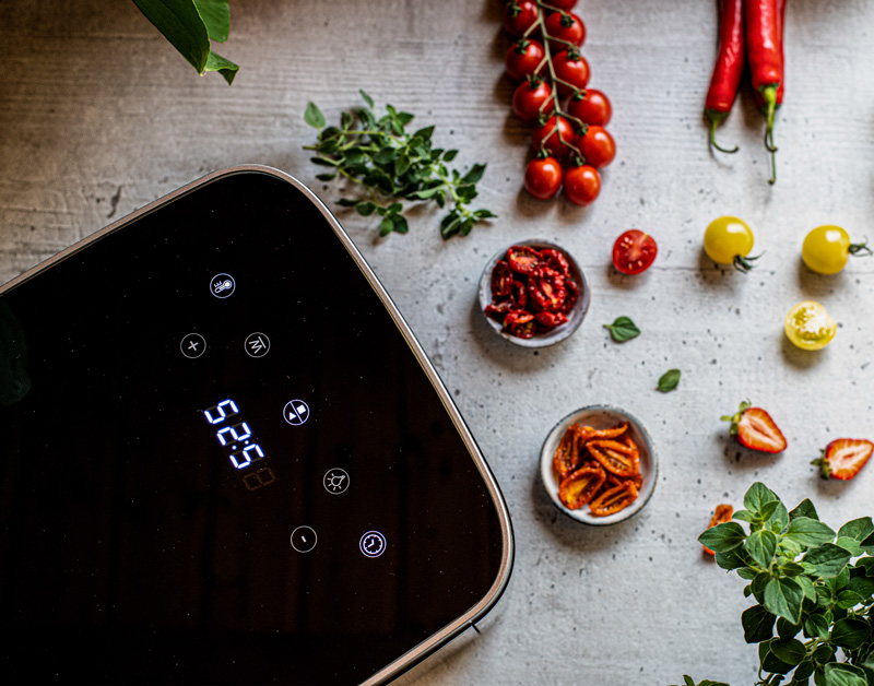 BPA stands for bisphenol A, a plastic additive that is often found in plastics. It is suspected of affecting health, as it can dissolve when plastics are heated and migrate into food. The food-contact parts of our dehydrators (dehydration grids, plates, trays, silicone forms) are BPA-free. This means that your food retains its natural flavour and is free from potential harmful substances – for safe and carefree dehydration.