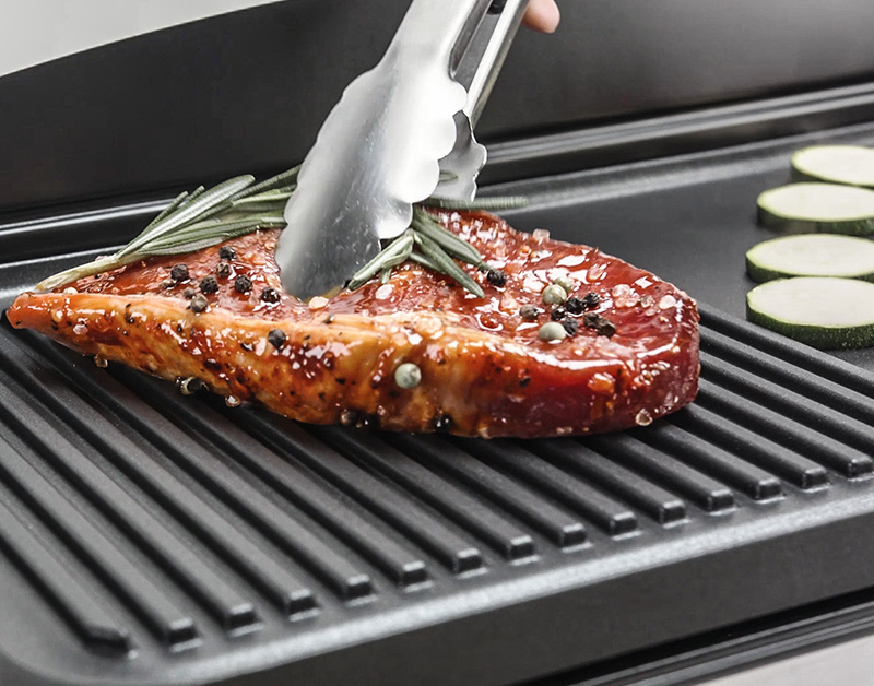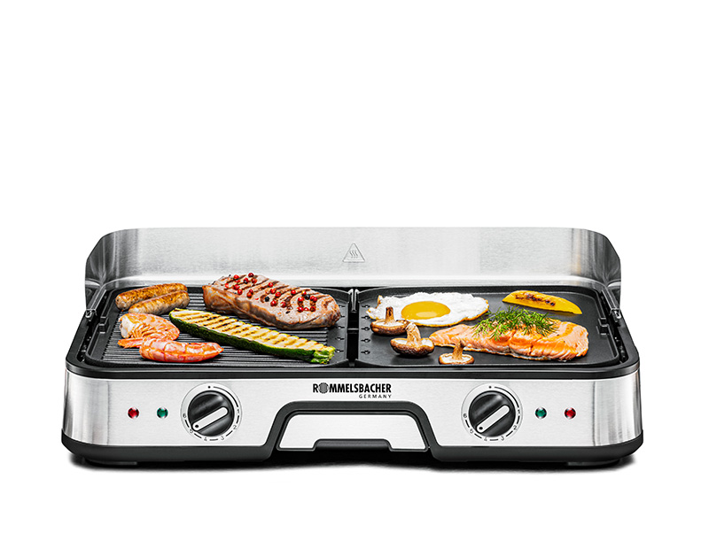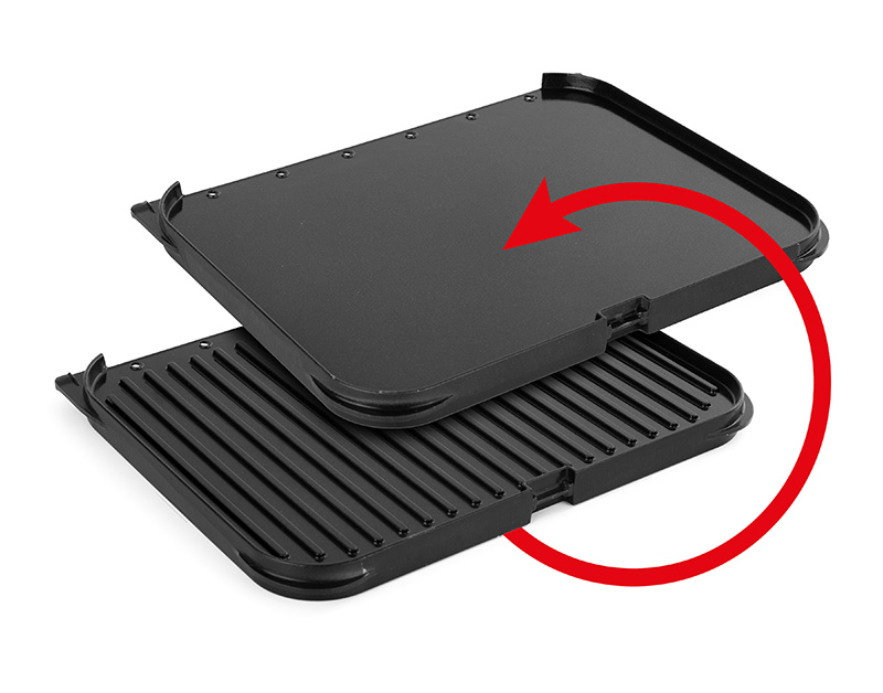 Zwei getrennt regelbare Grillplatten. Steak hier, Pancakes dort. Warum sich entscheiden?