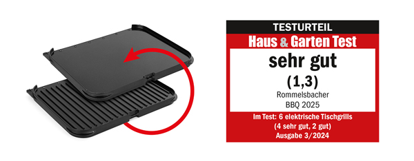 Er kombiniert echtes BBQ‑Feeling mit elektrischer Sicherheit, sauberem Betrieb und Leistungsstärke – ideal für Steaks, Spare Ribs, Burger oder sogar Pizza.