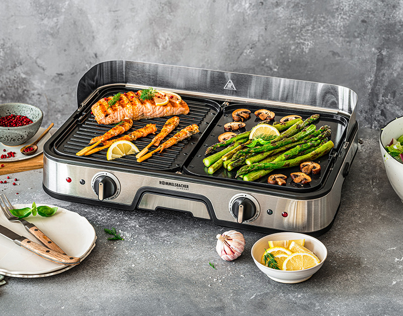 3 Positionen: Kontaktgrill, Überbacken, Tischgrill