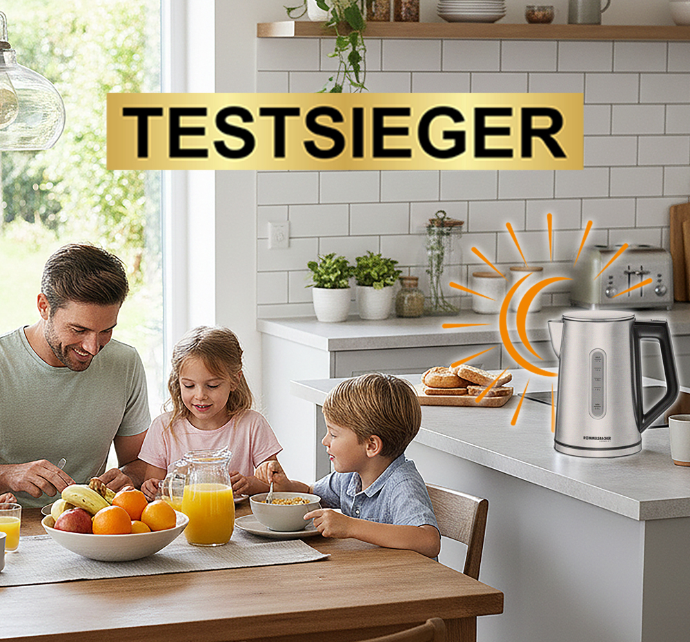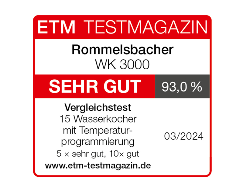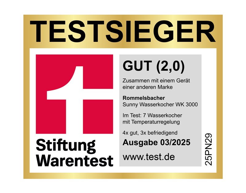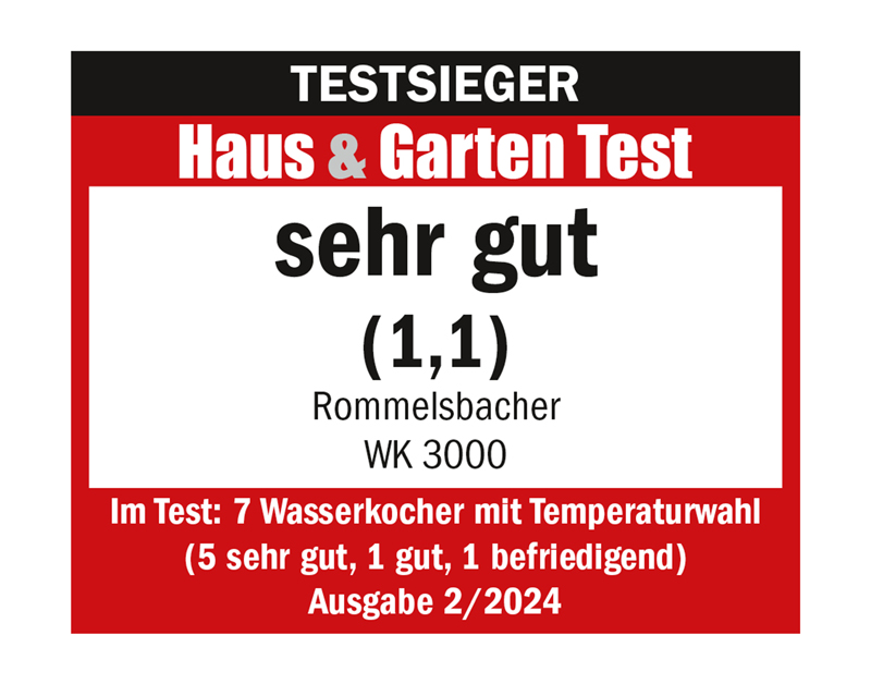 Unser Wasserkocher WK 3000 überzeugt bei Stiftung Warentest und sichert sich Platz 1 mit der Note GUT (2,0). Außerdem erreicht er Bestnoten auch bei bei ETM Testmagazin (Sehr gut, 93%) sowie Haus & Garten Test (Sehr gut, 1,1). Schnell erhitzt, punktgenau in der Temperatur und super einfach zu bedienen – auf diesen Wasserkocher können Sie sich verlassen!
